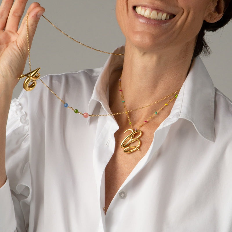 Colgantes de Iniciales en dos tamaños (4cm y 2cm), de Oro Vermeil (plata recubierta de oro amarillo), o de Plata Maciza.