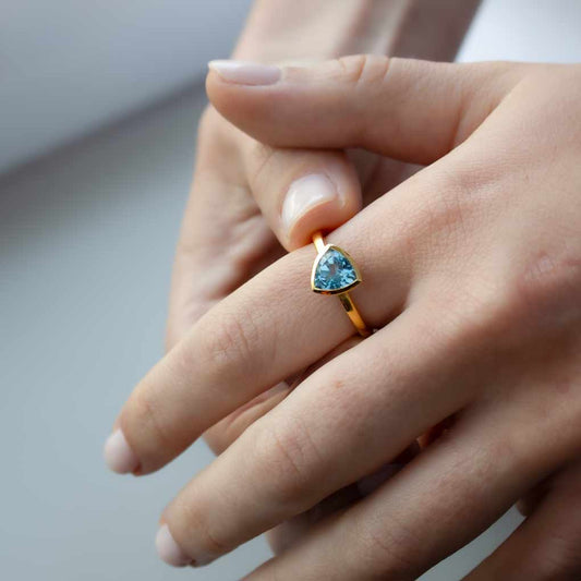 ANILLO VERMEIL DE ORO AMARILLO - MIX topacio azul trillion