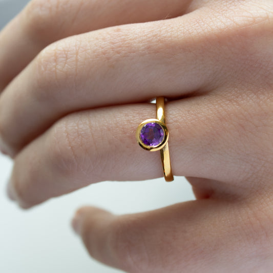 ANILLO VERMEIL DE ORO AMARILLO - MIX amatista round