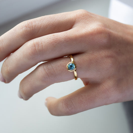 ANILLO VERMEIL DE ORO AMARILLO -MIX topacio azul round
