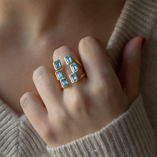 ANILLO VERMEIL DE ORO AMARILLO - MIX 6 topacios azules octogonal