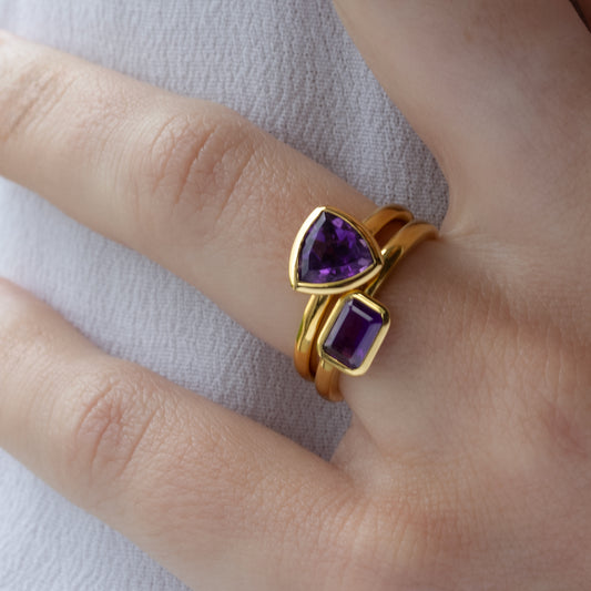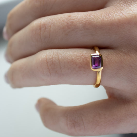 ANILLO VERMEIL DE ORO AMARILLO - MIX amatista octogonal