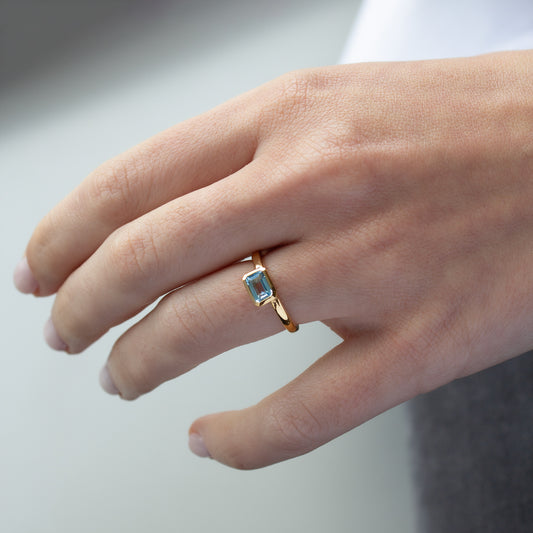 ANILLO VERMEIL DE ORO AMARILLO - MIX topacio azul octogonal