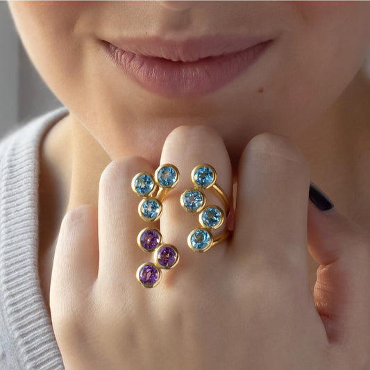 ANILLO VERMEIL DE ORO AMARILLO - MIX 10 round topacio azul y amatista