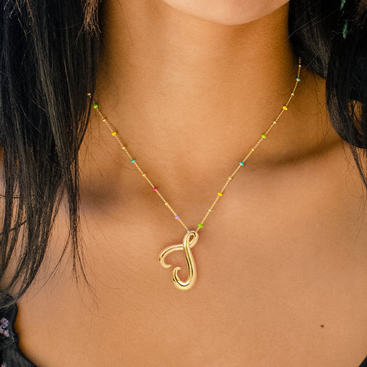 COLGANTE INICIAL "T" DE VERMEIL DE ORO AMARILLO GRANDE (4CM)