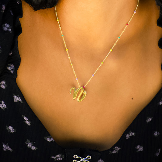 COLGANTE INICIAL "N" DE VERMEIL DE ORO AMARILLO (2CM)