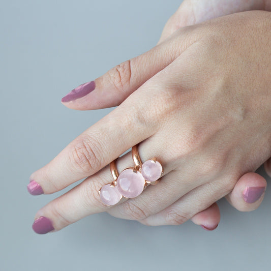 ANILLO DOBLE ARO VERMEIL ROSA Y CUARZOS ROSA - TRES TESOROS