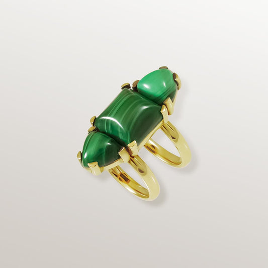 ANILLO DOBLE ARO VERMEIL AMARILLO Y MALAQUITAS - TRES TESOROS