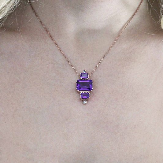 COLGANTE VERMEIL ORO ROSA AMATISTAS Y TOPACIOS - FLOW