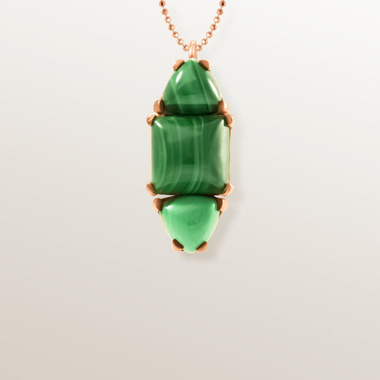 COLGANTE VERTICAL VERMEIL ORO ROSA MALAQUITAS - COLECCIÓN TRES TESOROS