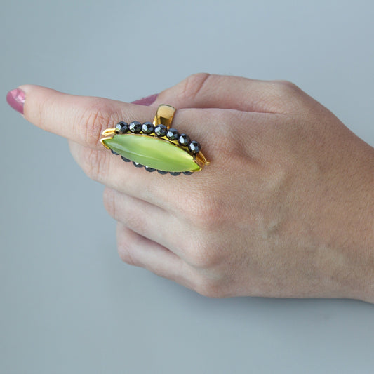 YELLOW GOLD VERMEIL AND GREEN AGATE RING - MYSTIC EYE