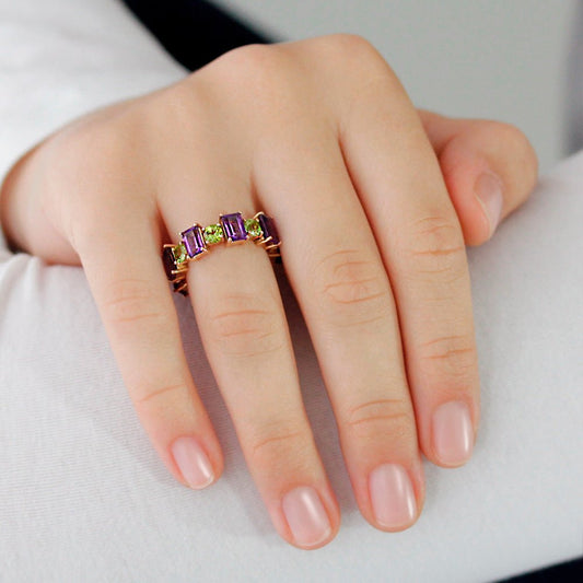 ROSE GOLD, PURPLE AMETHYSTS AND PERIDOTS RING - RAINBOW