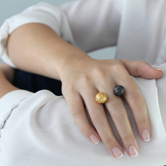 YELLOW GOLD VERMEIL TAHITIAN PEARL AND SPHERE RING - TAHITTOO