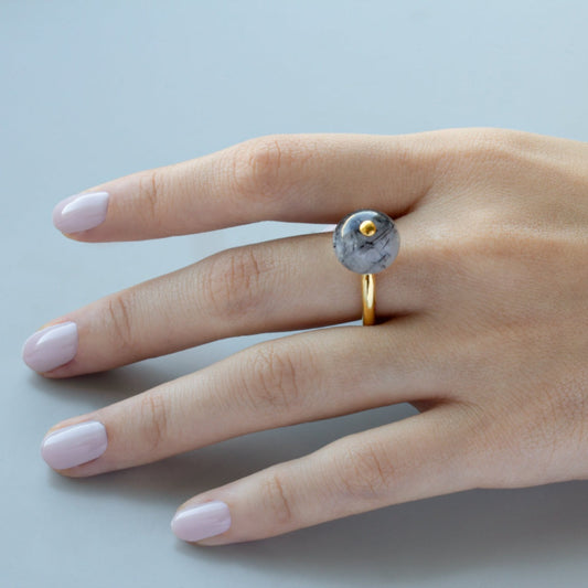 TOURMALINATED QUARTZ 12 MM PUMPKIN RING - CALABAZA
