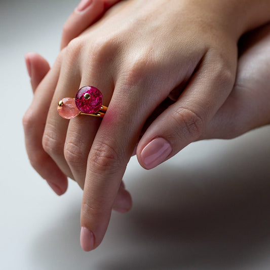 GOLD, PINK TOPAZES AND AMETHYSTS STAR RING - KALEIDO