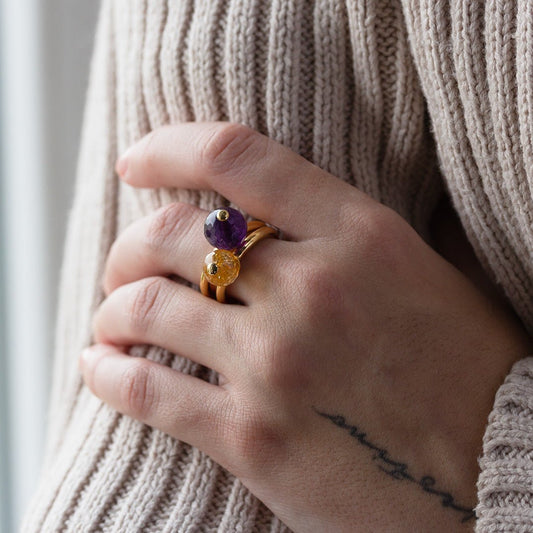 GOLD, AMETHYSTS AND PERIDOTS STAR RING - KALEIDO