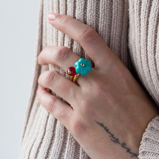 GOLD AND BLUE TOPAZES STAR RING-KALEIDO