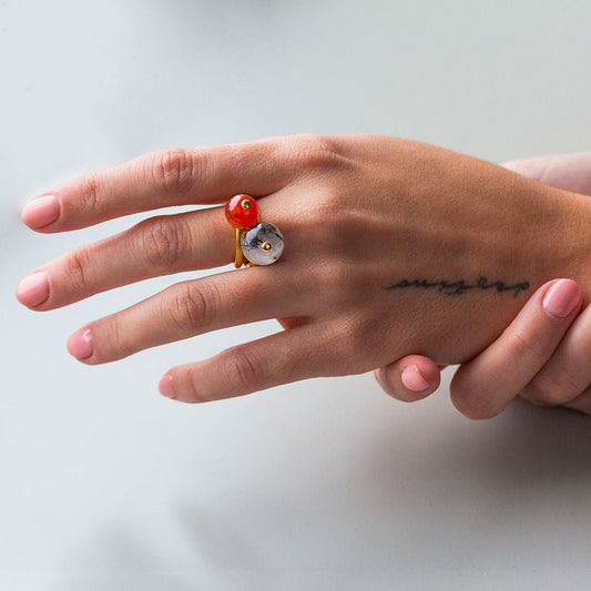 ROSE GOLD VERMEIL RHODOLITE MUSHROOM RING-SETAS