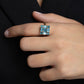 Square-shaped yellow gold ring set with blue topaz. This ring is a LIMITED EDITION PIECE and can be made to order if out of stock.