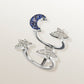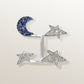 18 carat white gold ring with three stars and crescent moon motifs, pave-set with diamonds and sapphires. This ring is a LIMITED EDITION piece and can be made to order if out of stock.