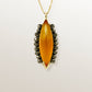 Yellow gold Vermeil* pendant featuring a honey coloured marquise-cut cabochon agate, surrounded by 18 faceted hematites. The chain is sold separately