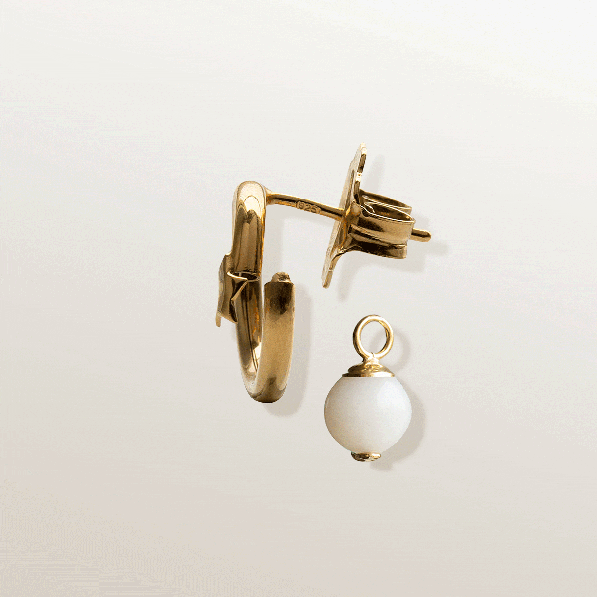 Charm para enganchar a los pendientes Calabaza Círculo Mágico. Vermeil* de oro amarillo y piedra luna de 10 mm. Puedes quitar y poner los charms de distintas piedras naturales para personalizar tus pendientes Calabaza Círculo Mágico. ¡24 colores disponibles! VENTA INDIVIDUAL. Los pendientes Calabaza círculo mágico se venden aparte.