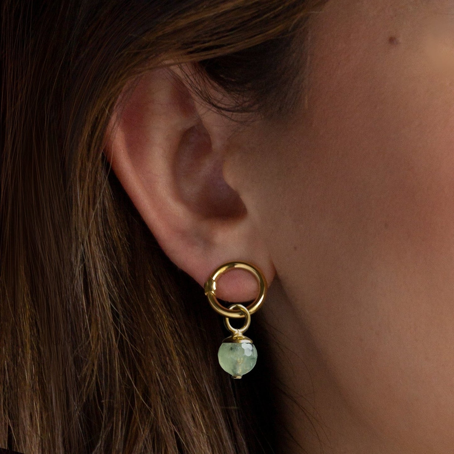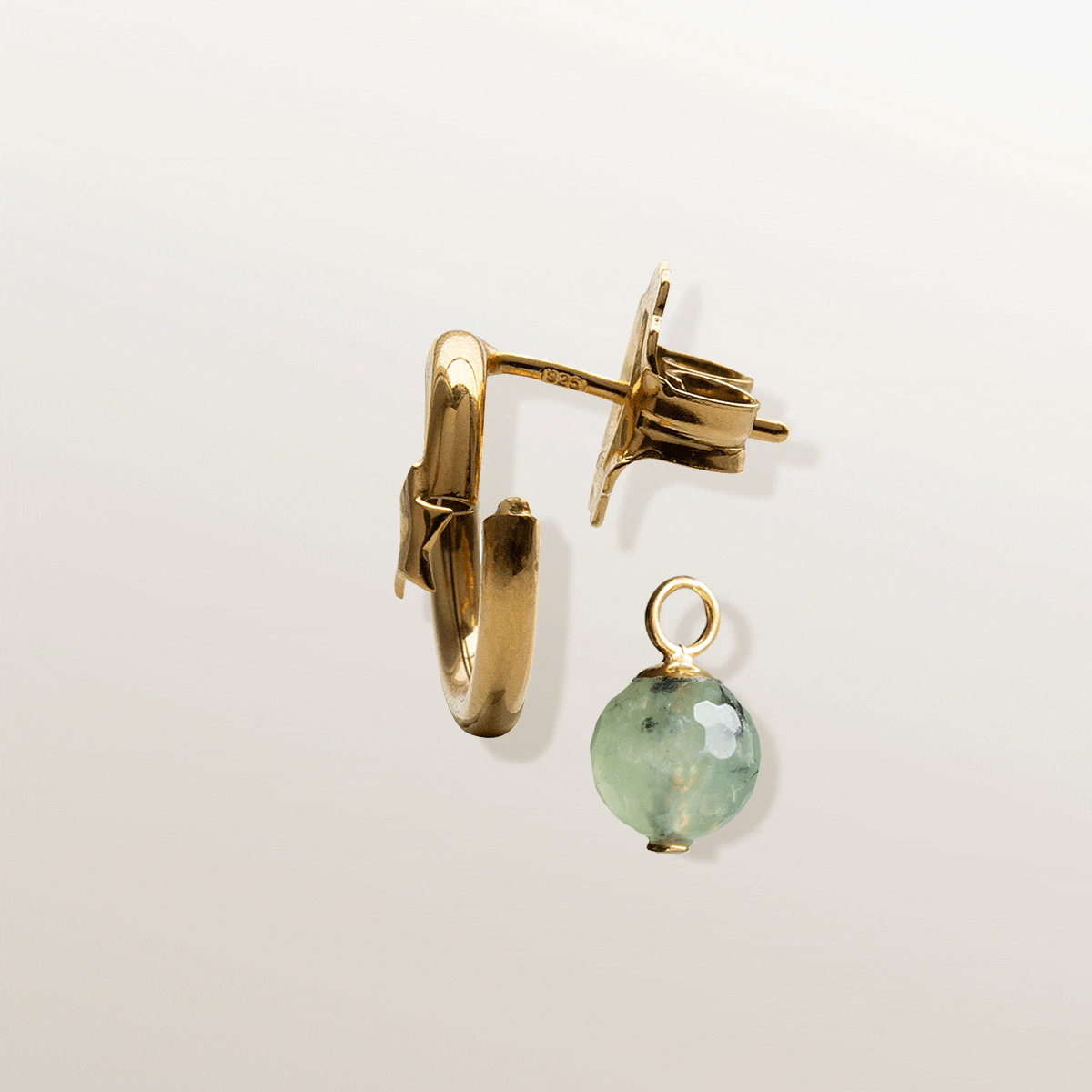 Charm para enganchar a los pendientes Calabaza Círculo Mágico. Vermeil* de oro amarillo y prenhita de 10 mm. Puedes quitar y poner los charms de distintas piedras naturales para personalizar tus pendientes Calabaza Círculo Mágico. ¡24 colores disponibles! VENTA INDIVIDUAL. Los pendientes Calabaza círculo mágico se venden aparte.